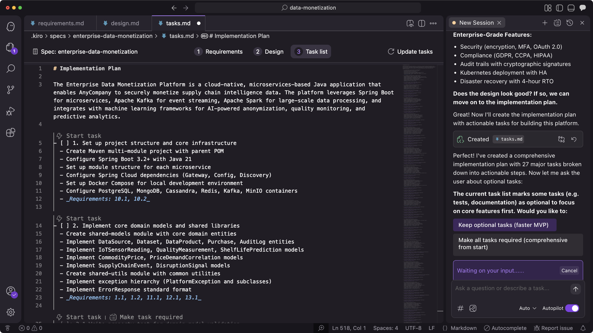 Kiro helps break down complex features into manageable tasks so your team can ship their best work with ease.